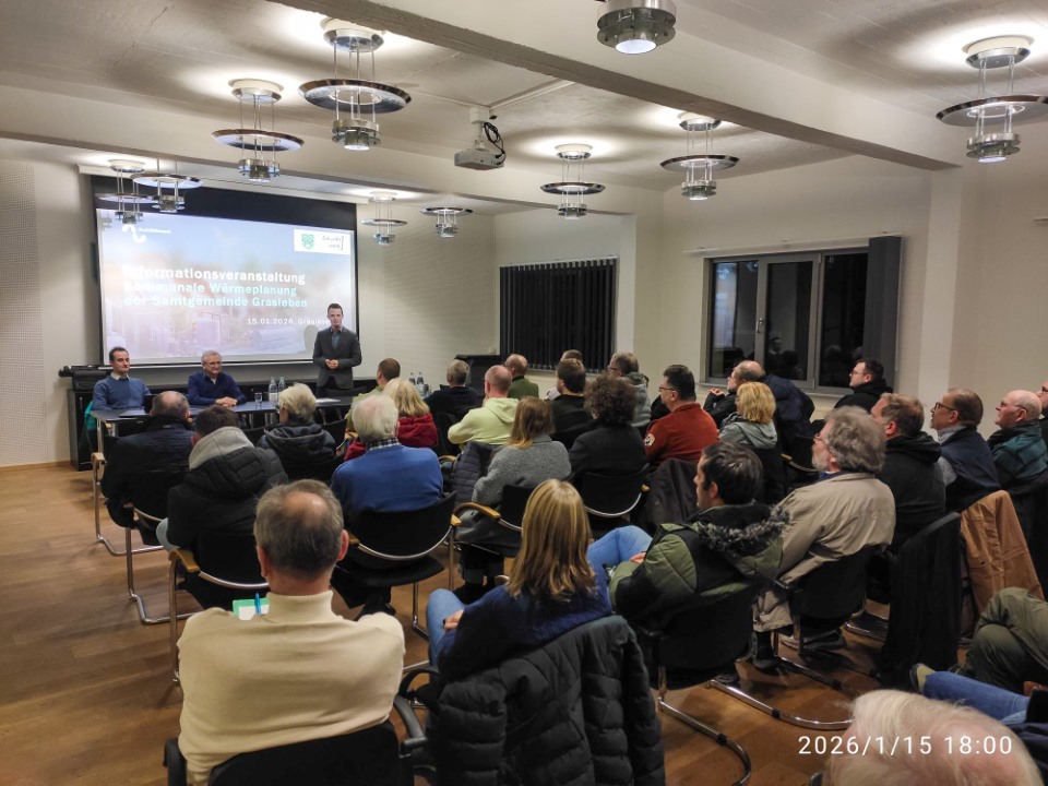 Am 15.01.2026 fand eine Informationsveranstaltung zur kommunalen Wärmeplanung statt. Dabei wurden erste Ergebnisse vorgestellt sowie zu Themen wie Nahwärme und Heizungstausch informiert. Rund 30 interessierte Einwohnerinnen und Einwohner nahmen im Rathaus der Gemeinde Grasleben daran teil.